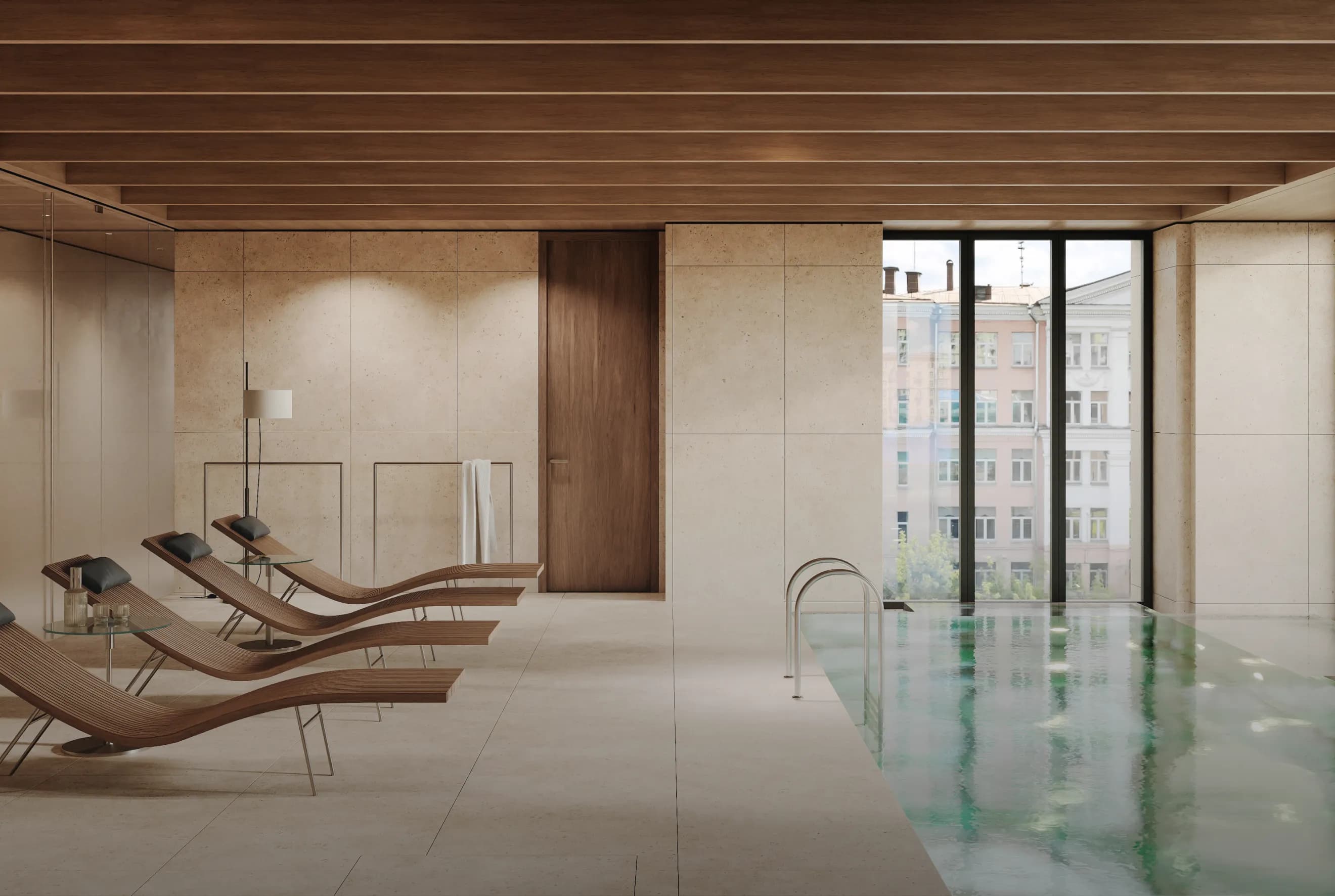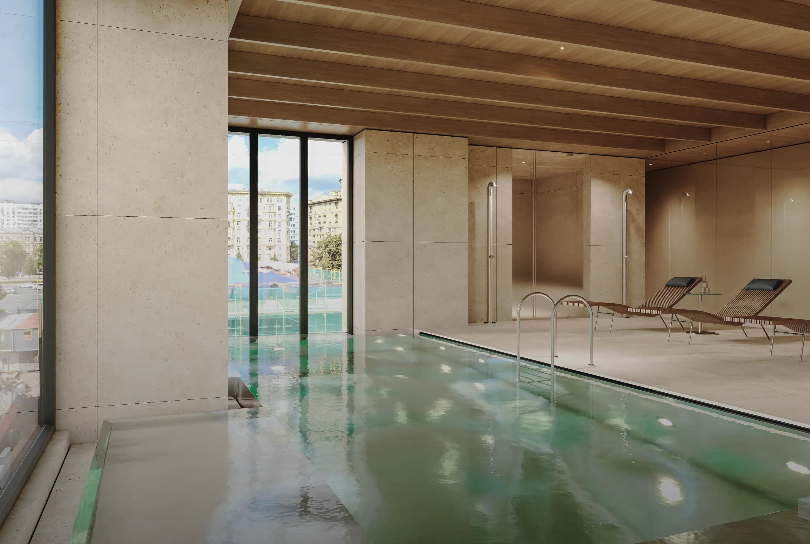 Идеальное утро или восстановление после долгого дня — для вашего комфорта предусмотрен бассейн турецкий хаммам и массажный кабинет. Достаточно спуститься на лифте, чтобы обрести гармонию и подарить себе полноценный отдых