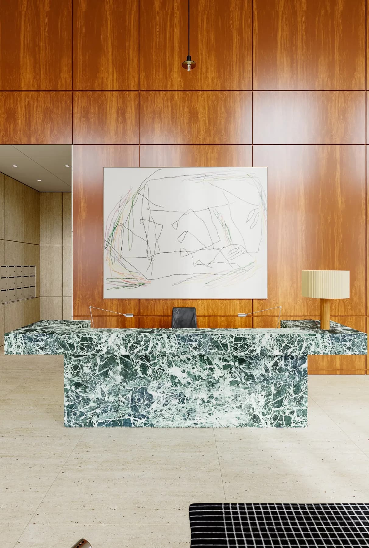 В данном проекте лобби — истинная поэзия форм и материалов. Авторы вдохновлялись геометричной строгостью 1930-х, эпохой, подарившей нам культ функциональности и лаконичной красоты. Здесь нет места случайным деталям: только чистые линии, благородная фактура натуральных материалов и осмысленная сдержанность.